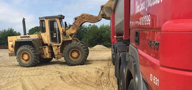 - Transport og salg af: Fyld, sand, ral, Støbemix, vejgrus og Mørtel.